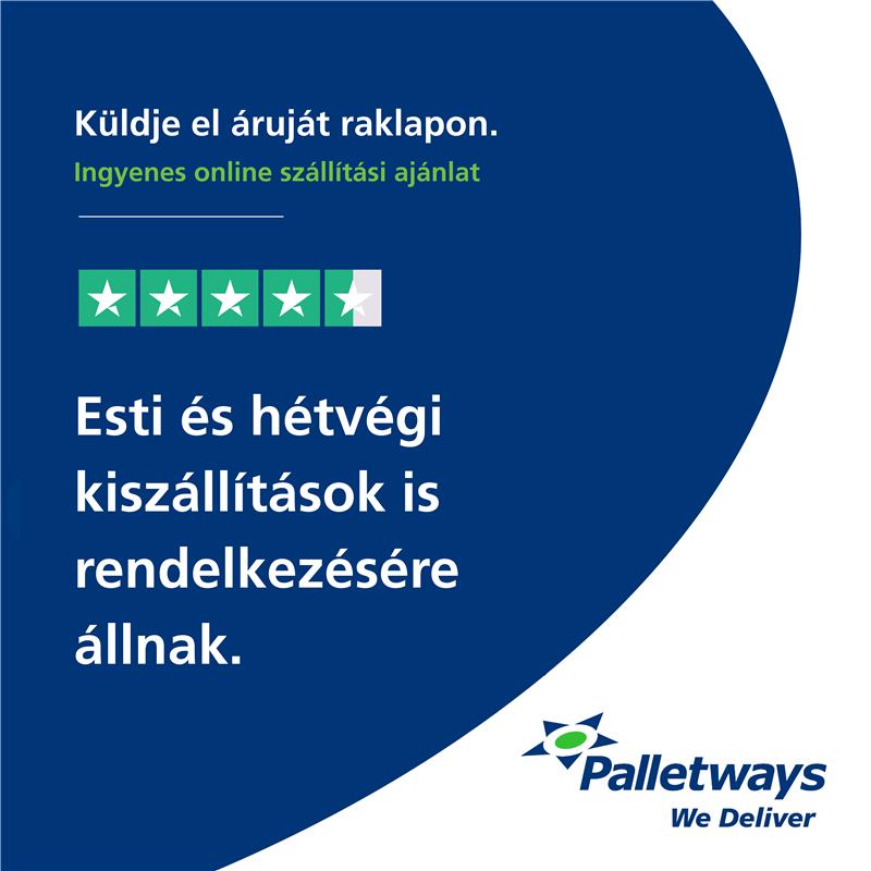 Kiemelkedő ügyfélbizalom – A Palletways és a Palletways Online stabil jelenléttel és magas pontszámokkal rendelkezik a Trustpilot felületén, köszönhetően a több ezer pozitív ügyfélvisszajelzésnek.